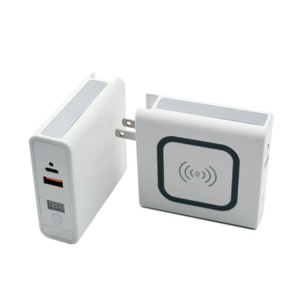 White 8000 mAh Travel Charger Power Bank With Wireless Charging For Mobile phone